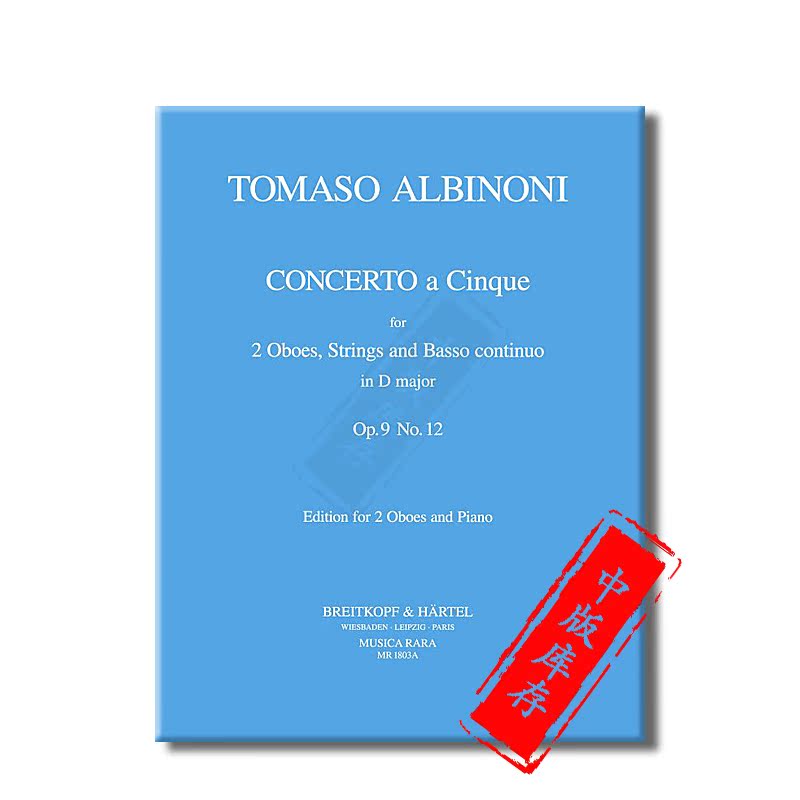 Op9 大熊乐谱书 两支双簧管弦乐低音通奏 托马索 Concerto Oboes No12 MR1803a Piano Tomaso D大调第五协奏曲