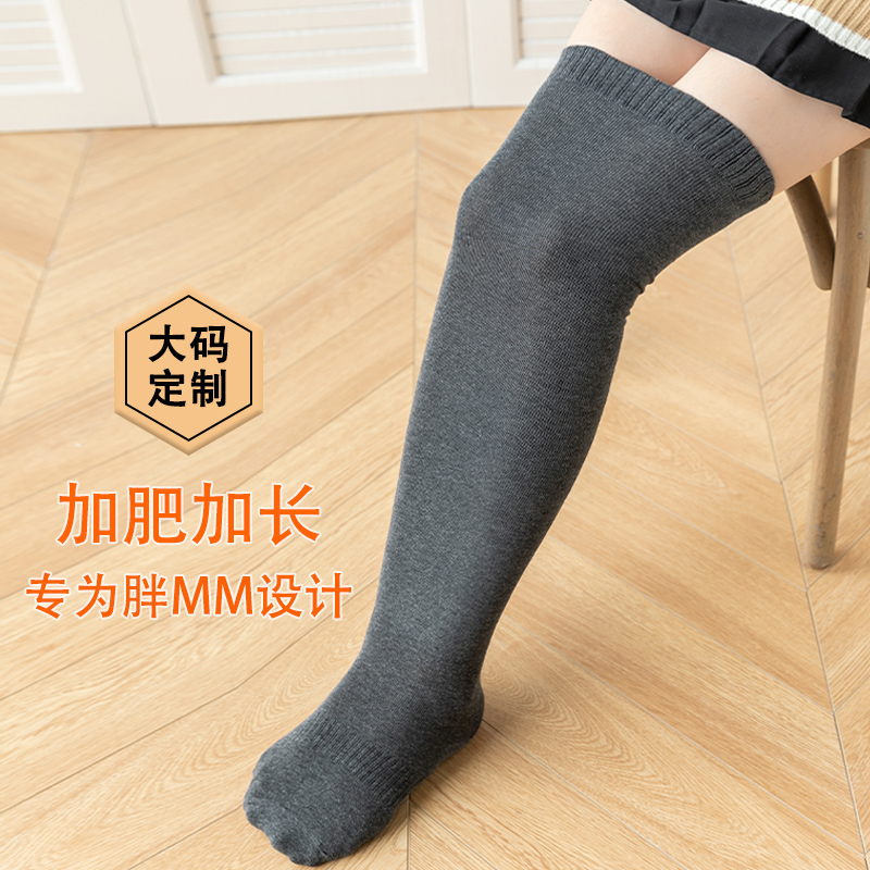 秋冬季 长筒过膝袜加肥加大加宽棉质大腿袜子女保暖防滑 加绒加厚款