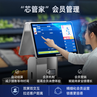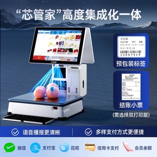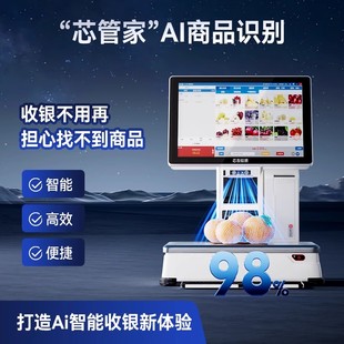 智能识物双屏触屏称重收银机一体机收银秤水果店熟食蔬菜冒菜果蔬熟零食店生鲜超市便利店收银称电子秤收款 机