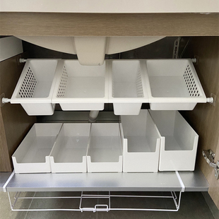 厨房橱柜内分层隔板置物架收纳筐免打孔伸缩杆收纳架子下水槽神器