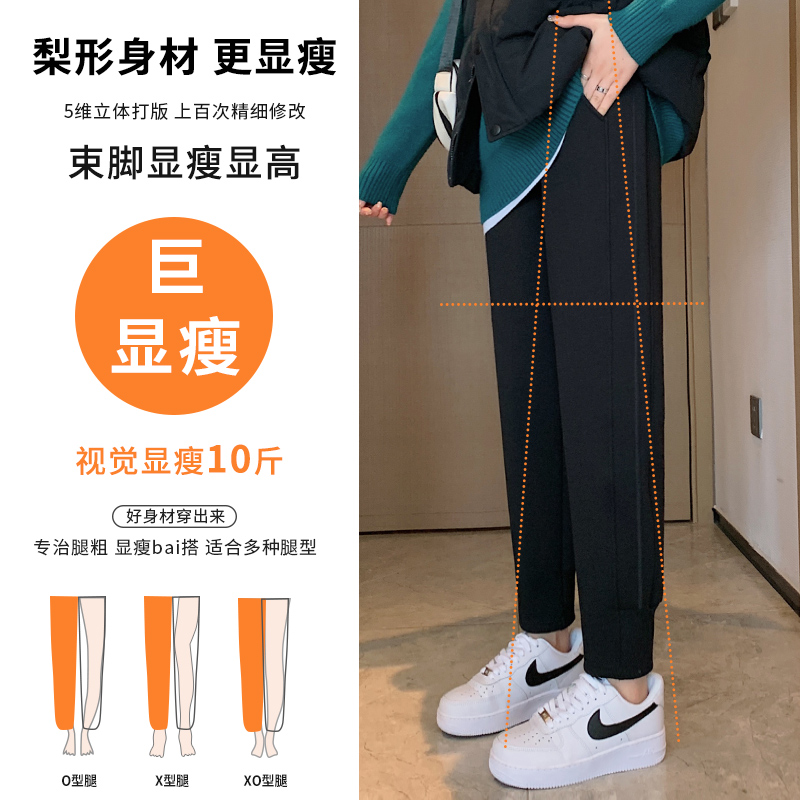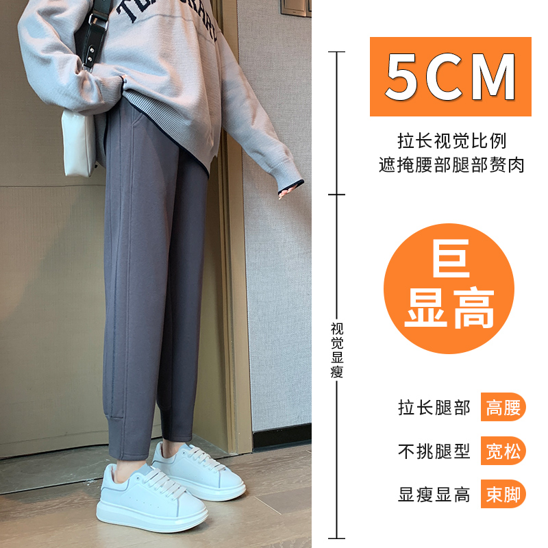 女秋冬季 小个子春秋休闲裤 宽松哈伦裤 子加绒灰色卫裤 束脚裤 运动裤