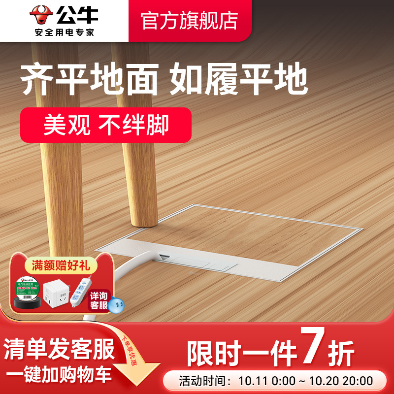 公牛地插插座隐形嵌入式 纯平地插地板家用地脚插座自带底盒