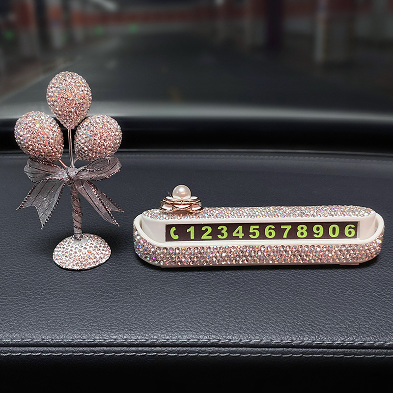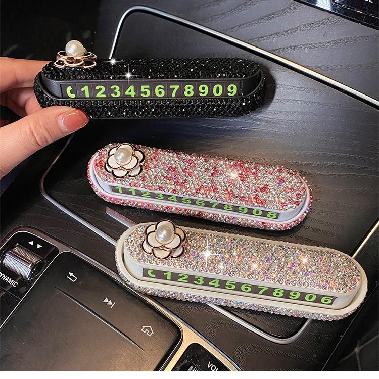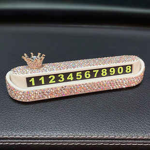 汽车临时停车号码 牌高级镶钻车内饰品数字摆件车载挪车电话牌女生