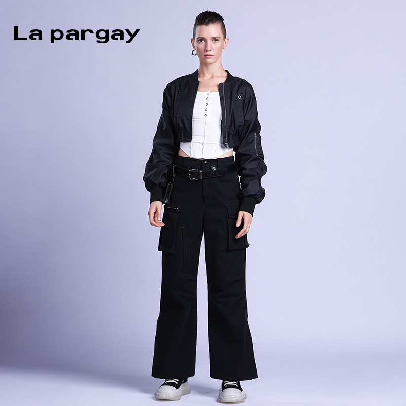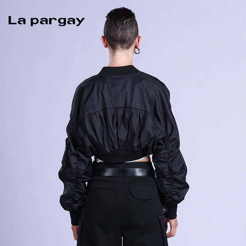 黑色个性 纳帕佳宽松短款 女式 外套2025早春新款 休闲设计感上衣 长袖