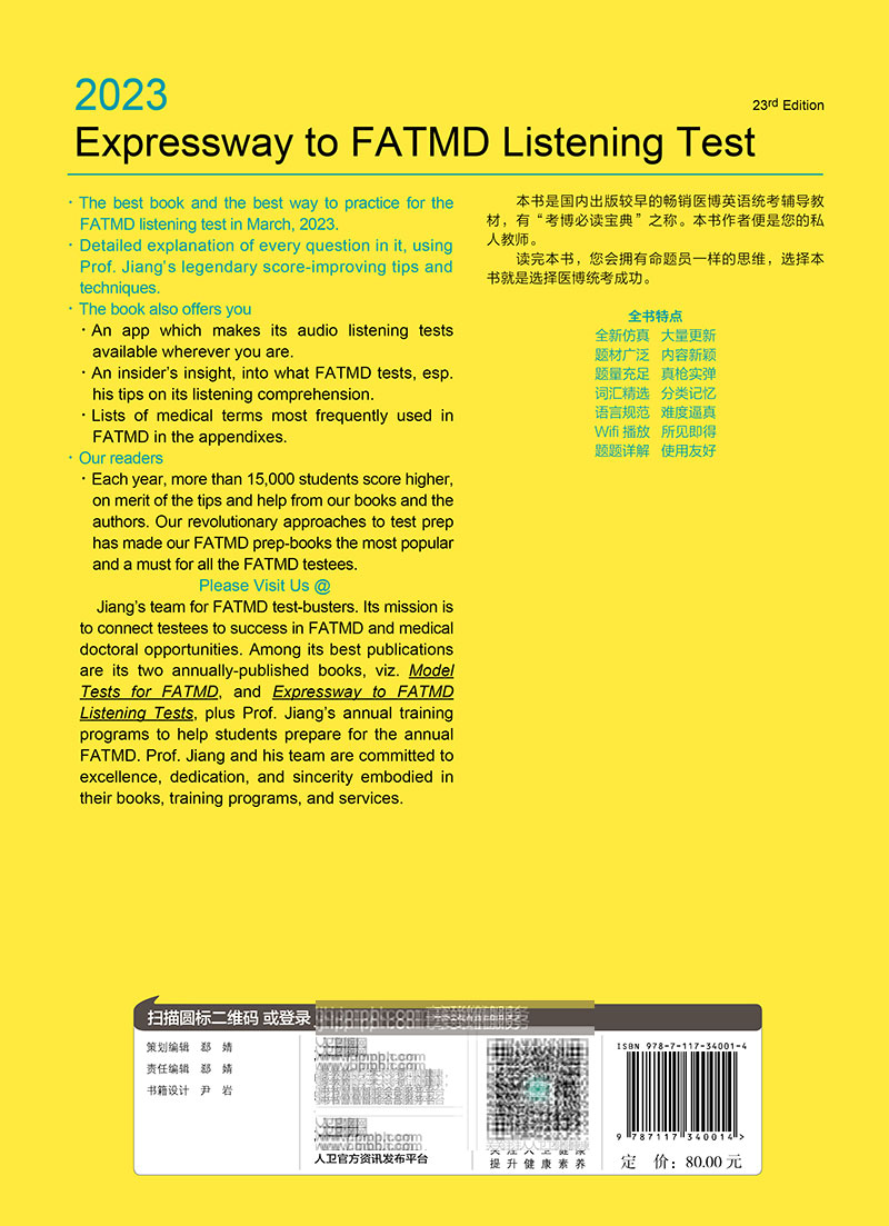 社9787117340014 蒋跃主编人民卫生出版 现货2023全国医学博士英语统考听力一本通 配增值