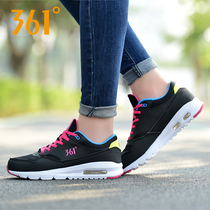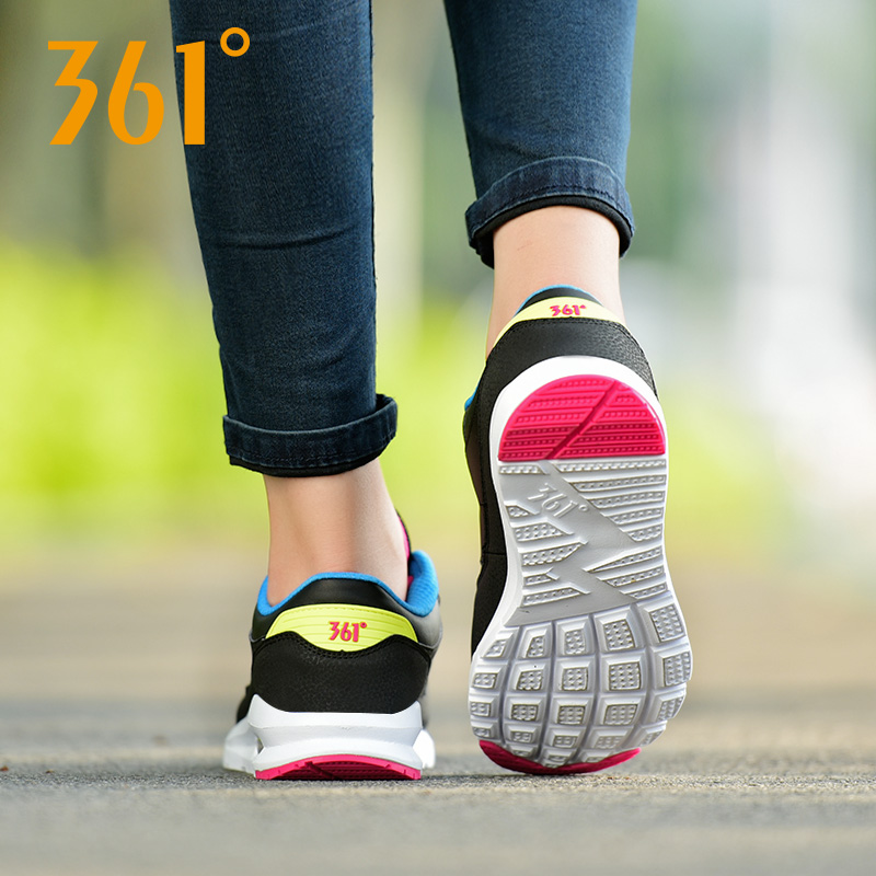 361度轻便减震皮面休闲跑步鞋 361女鞋 新款 女2025春秋季 气垫运动鞋