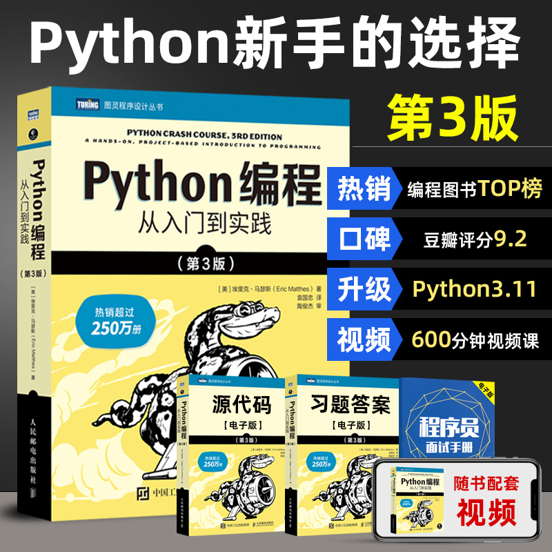 python编程从入门到实战第3版 新版 计算机零基础学python编程基础教材程序设计开发书籍Python教程自学 新华书店