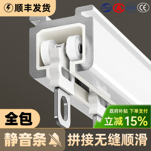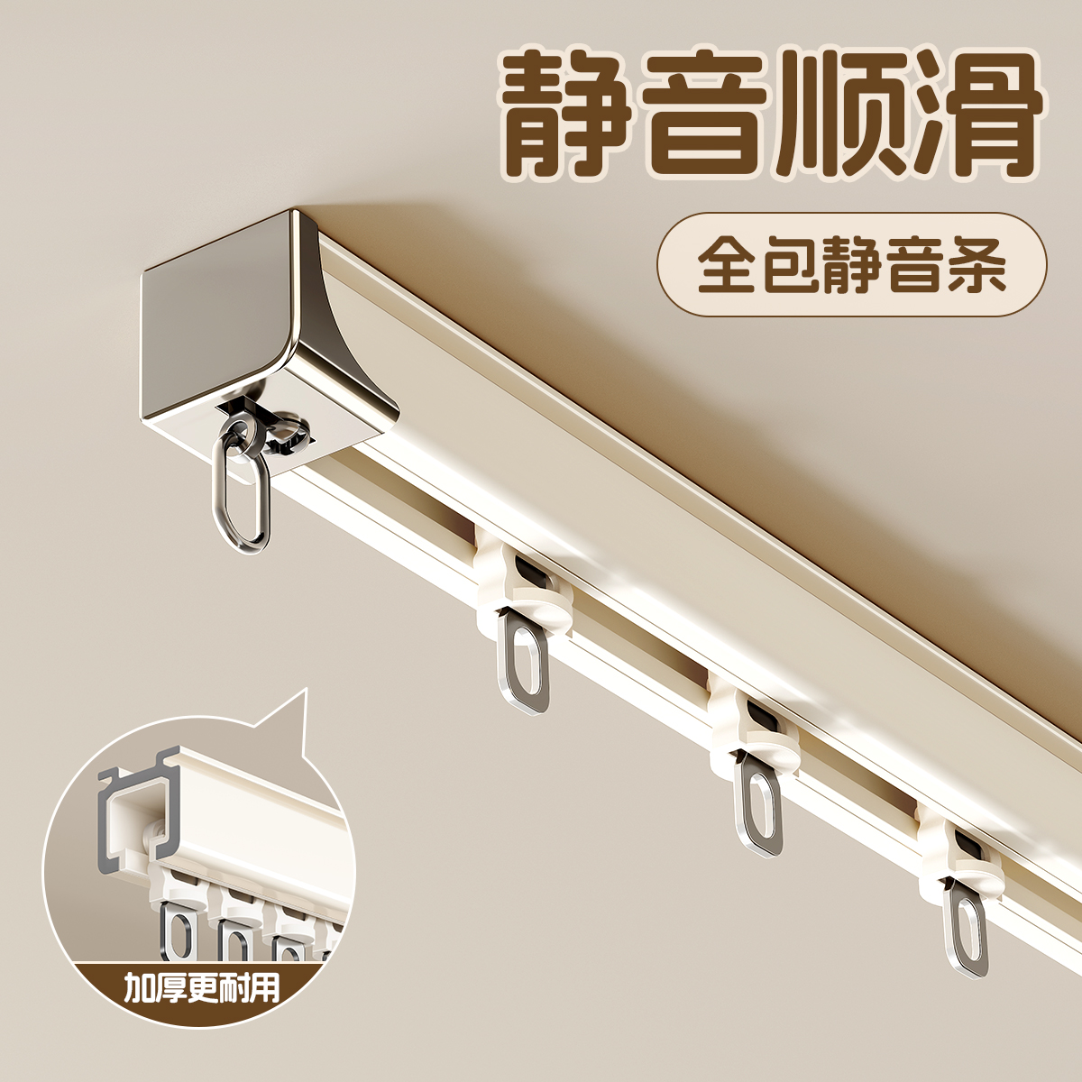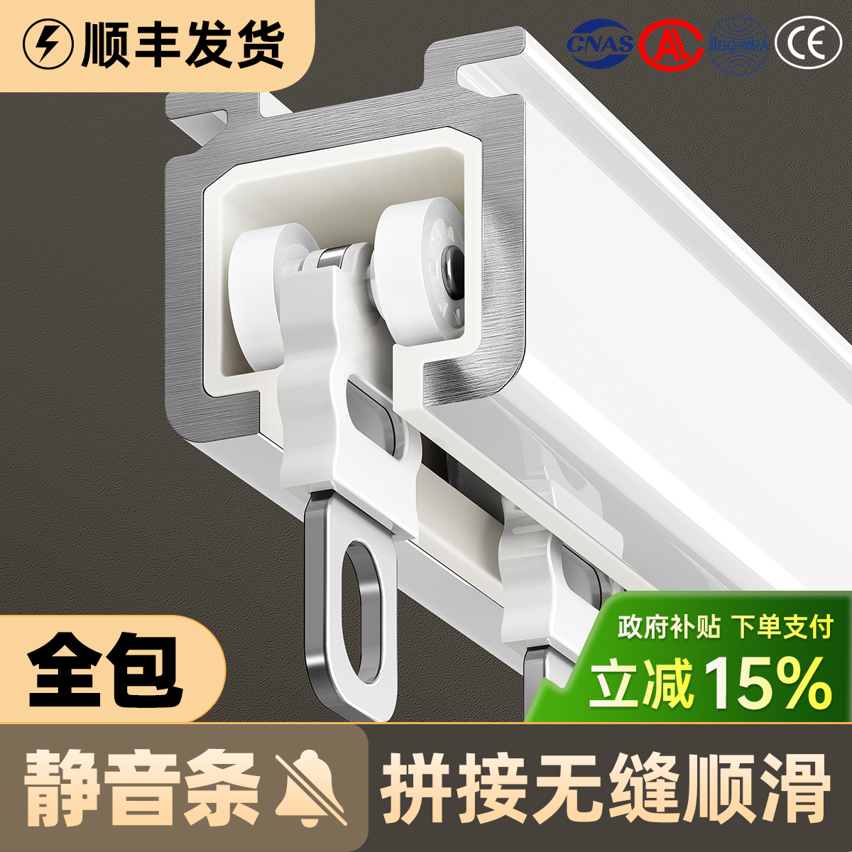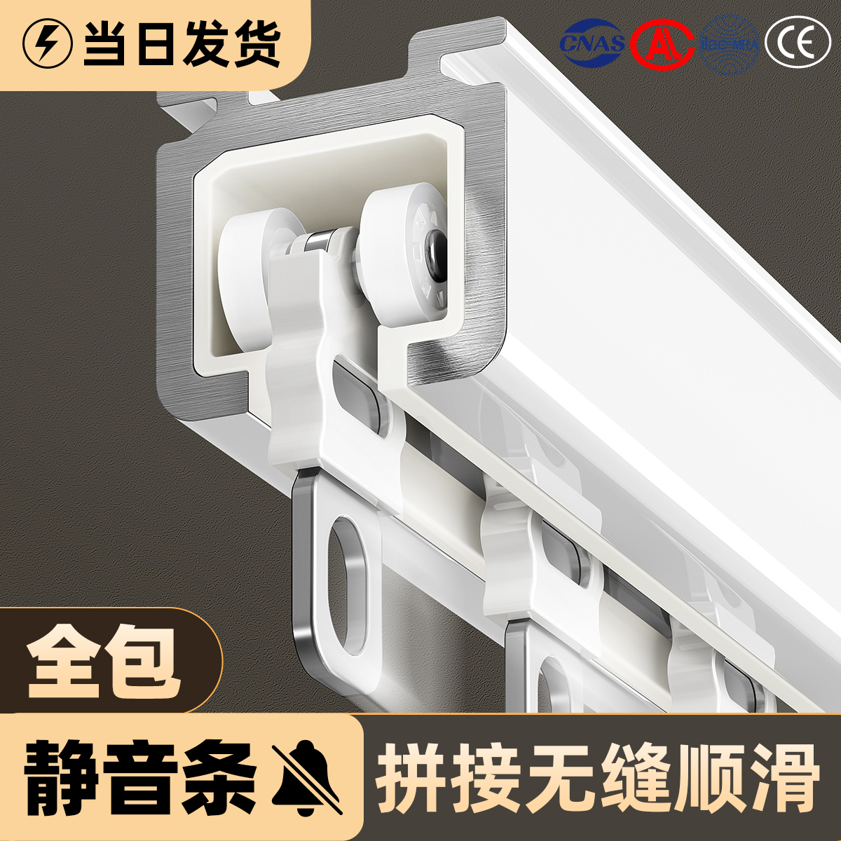窗帘轨道静音滑轨挂钩滑轮滑道铝合金顶侧装 伸缩导轨免打孔窗帘杆