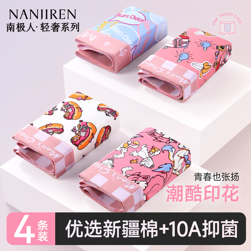 猛男粉色裤 男生可爱纯棉四角裤 衩送男友礼物青少年 内裤 南极人男士