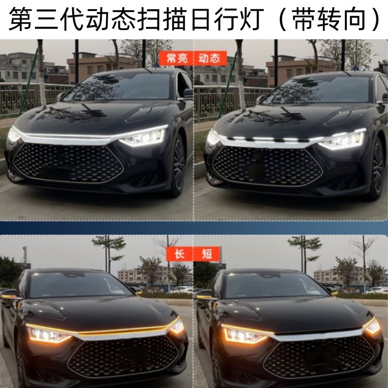 饰双色白黄导光条机盖带转向灯 日行灯装 新款 动态扫描汽车贯穿式