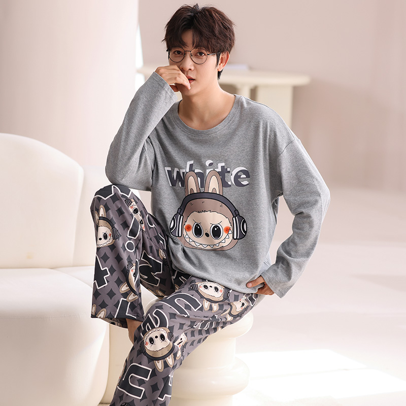 四季 长袖 通用休闲家居服秋冬薄款 大码 轩靓纯棉睡衣男士 套装 春秋季