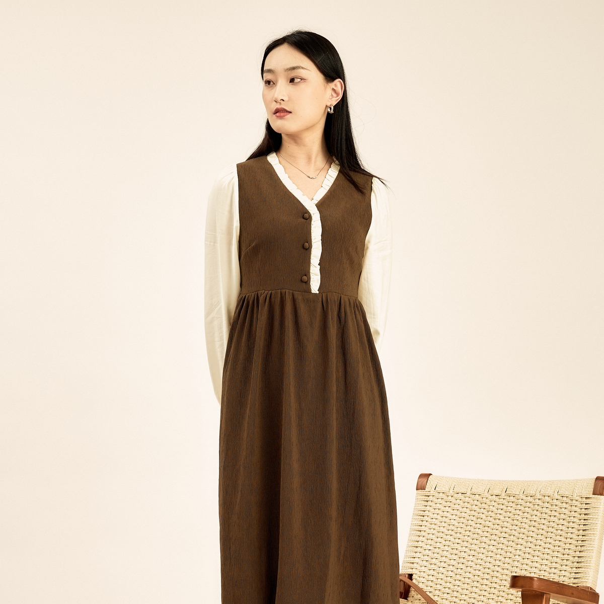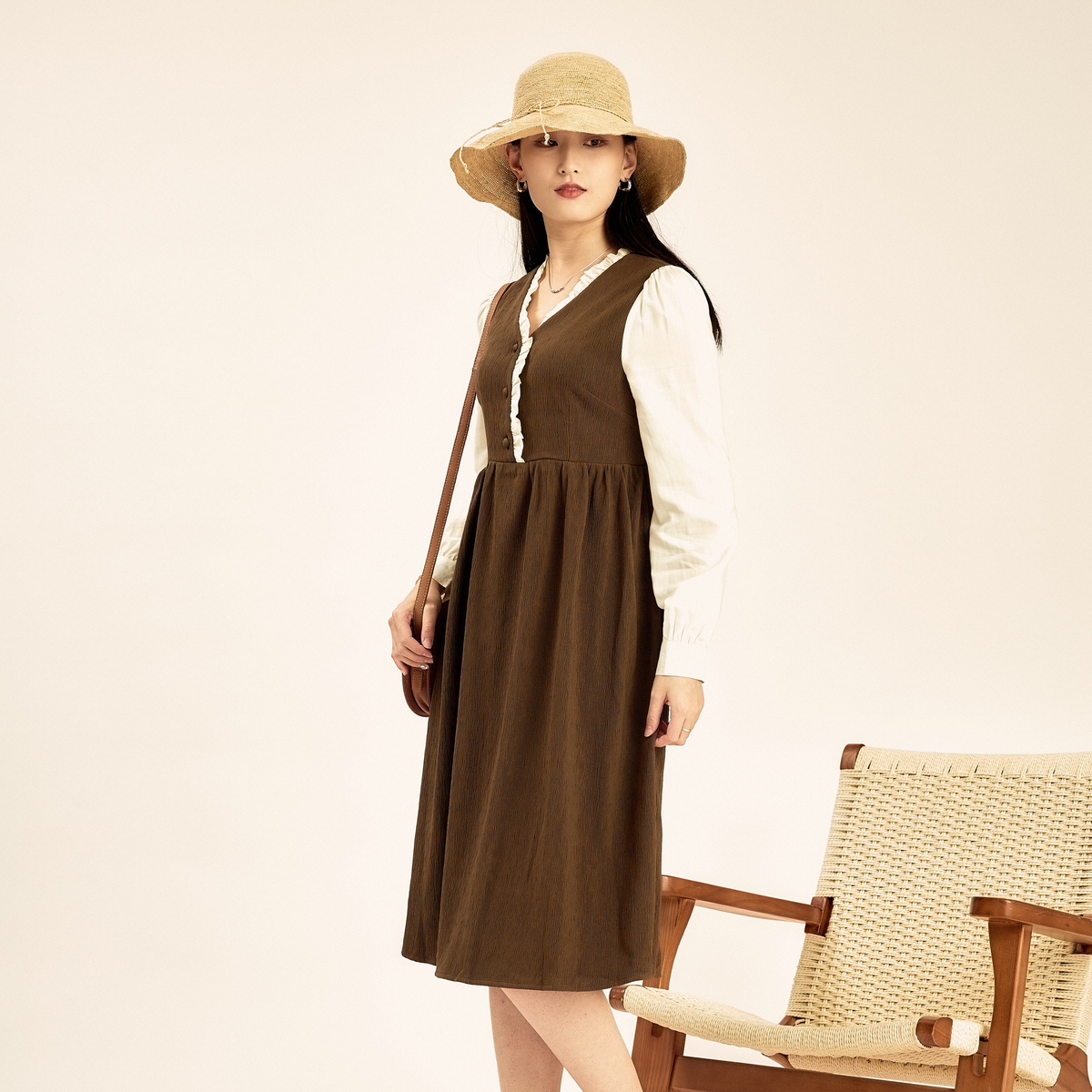 温柔含绵羊毛中长裙32547D013 法式 Vero Moda连衣裙女2025秋冬新款