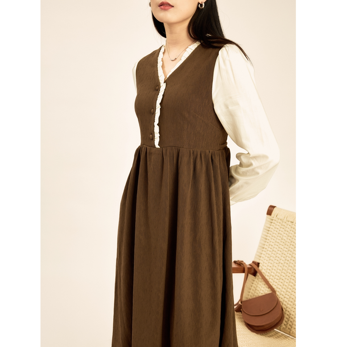 设计感小众假两件v领斜肩长袖 高腰显瘦通勤a字短裙子 连衣裙女秋装