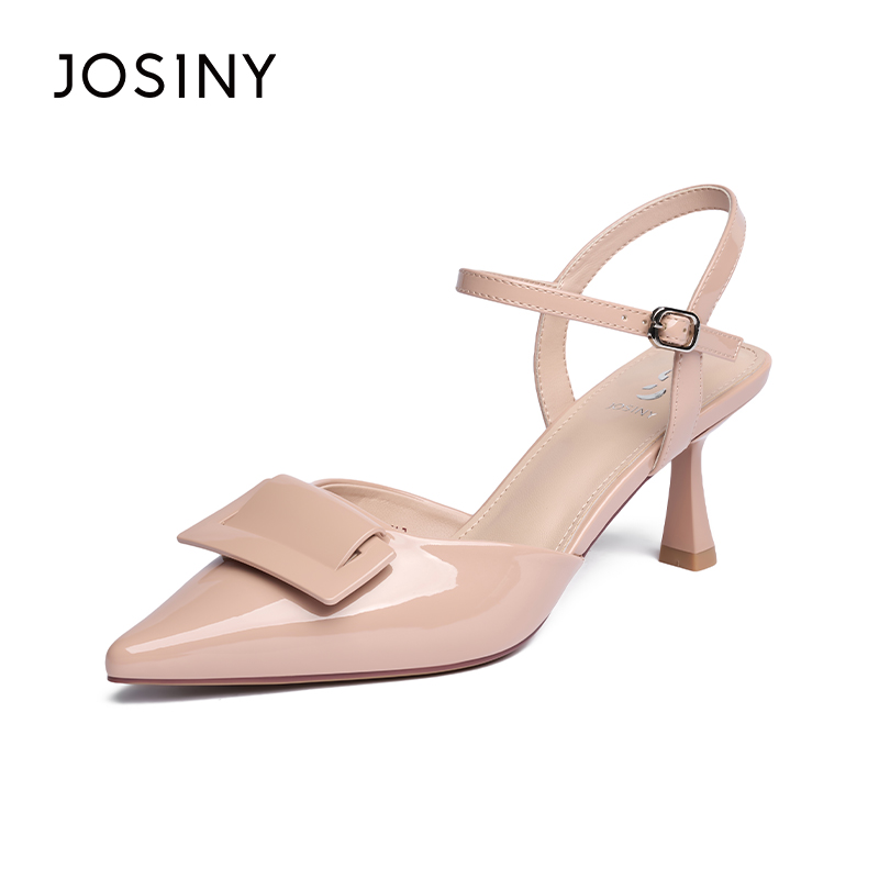 仙女风尖头单鞋 女时尚 早秋 漆皮细跟后空包头鞋 卓诗尼2025新款