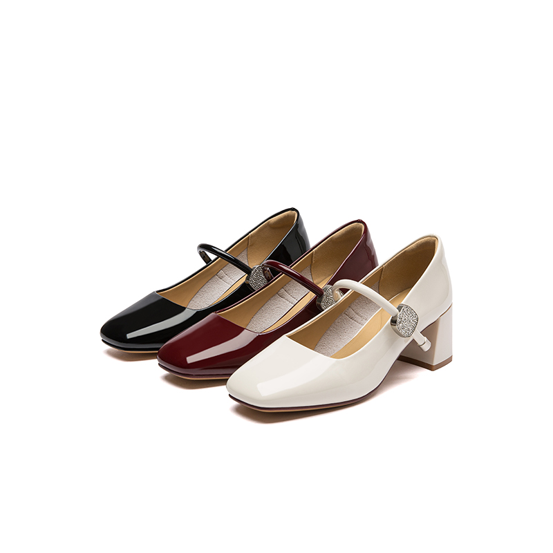 真皮浅口单鞋 新款 子E1T1DCQ5预 女2025秋季 百丽复古粗高跟玛丽珍鞋