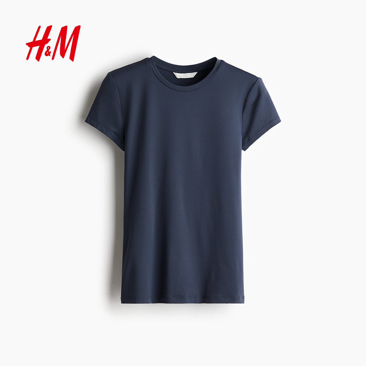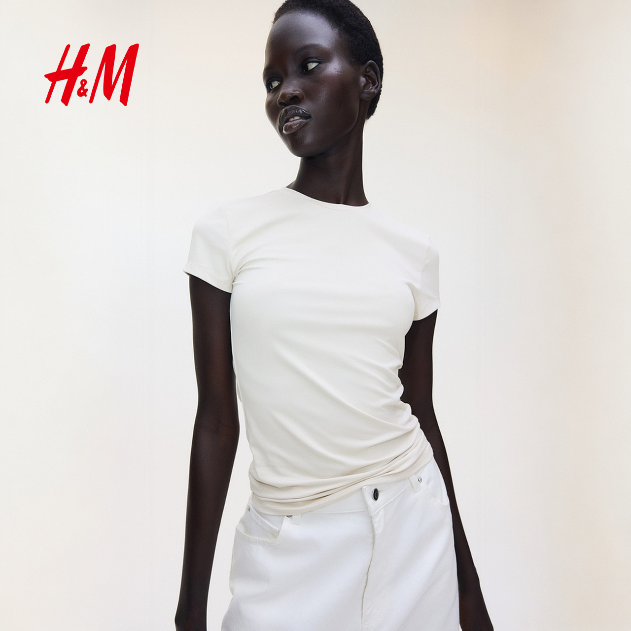 T恤2025秋季 显瘦短袖 新款 休闲圆领简约修身 上衣1142908 时尚 HM女装