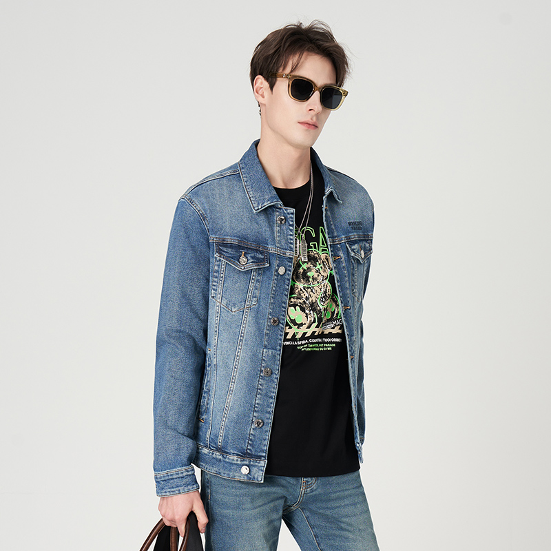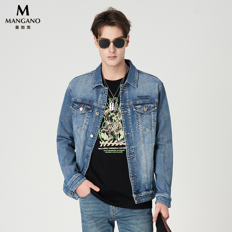 外套男 休闲翻领牛仔夹克街头时尚 Mangano曼加龙 奥莱2025春秋新品