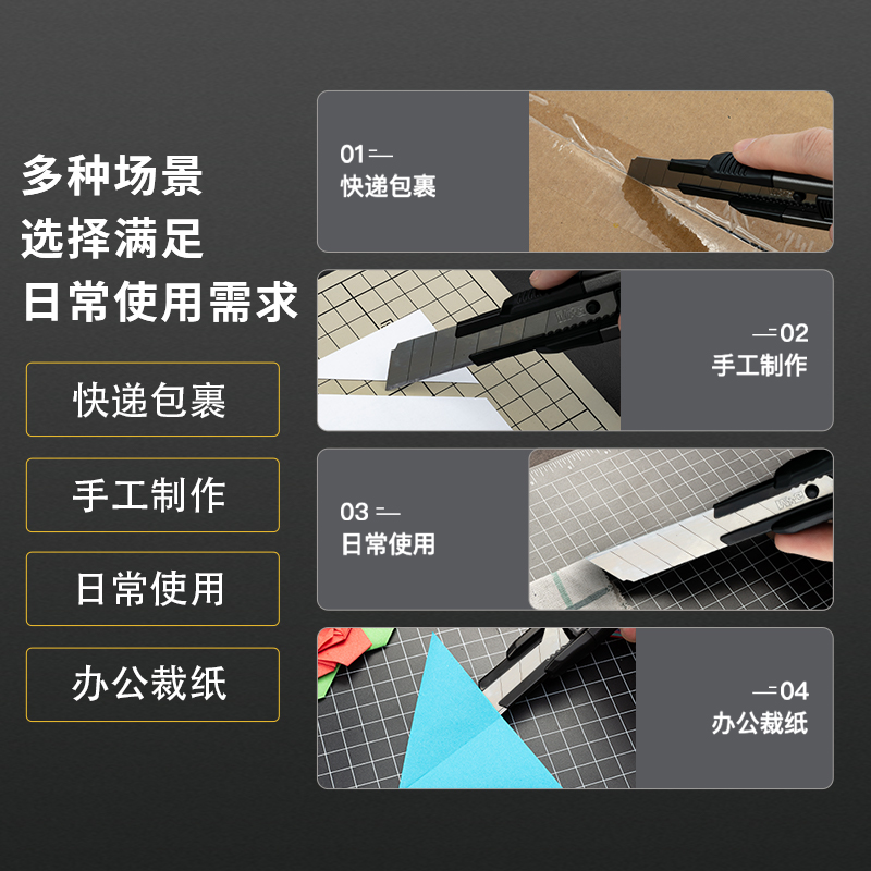 晨光新款 黑刃防锈美工刀重型多功能墙纸壁纸刀裁纸刀拆快递包裹开箱切割刀专用创意学生工具刀伸缩大号美工刀