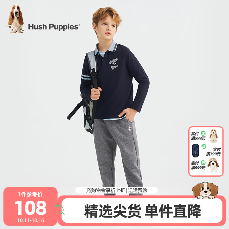 中大童休闲学院风T恤春秋新款 Polo衫 儿童上衣 男童长袖 暇步士童装