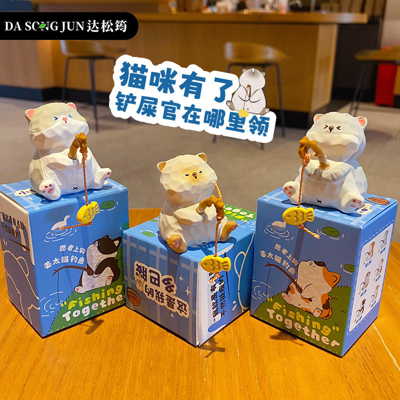 2025年新款 饰品 木雕风姜太猫胖橘办公室桌面小摆件汽车用品家居装