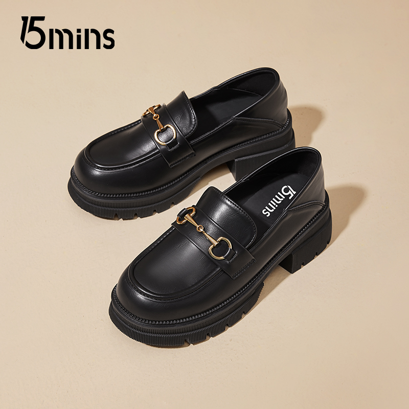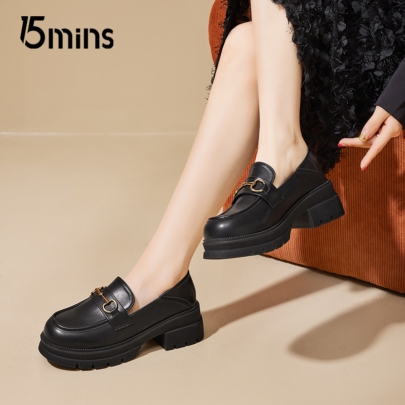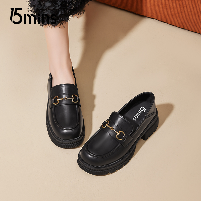 一脚蹬黑色粗跟英伦风小皮鞋 早春单鞋 女2025新款 15mins厚底乐福鞋