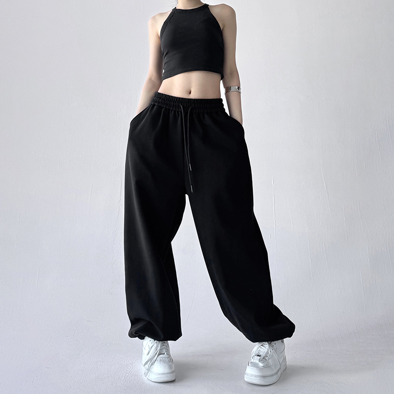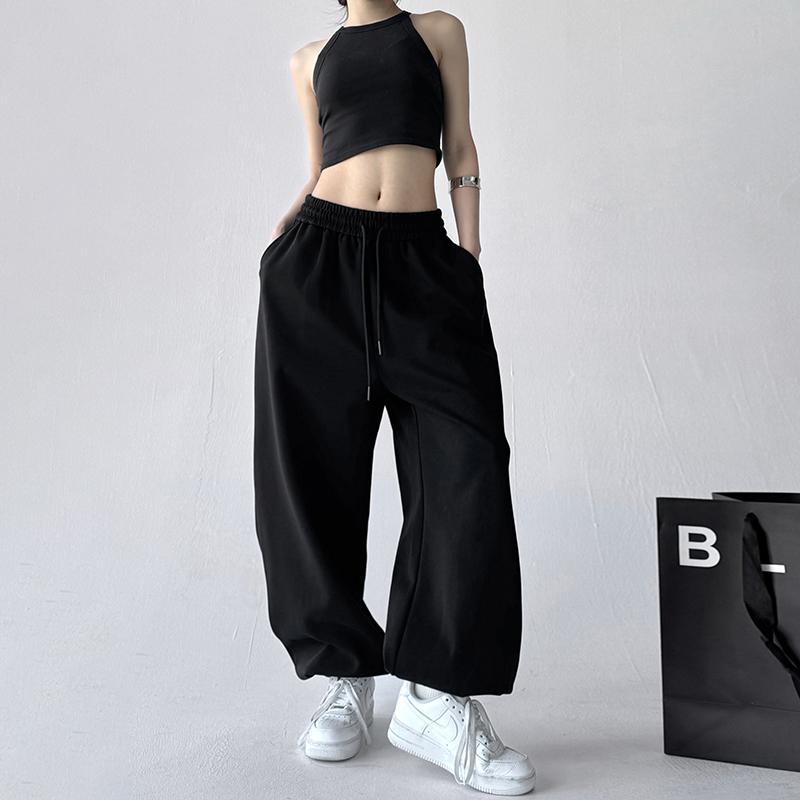 空气层垂感卫裤 宽松显瘦拖地裤 2025春秋韩版 松紧腰抽绳运动休闲裤