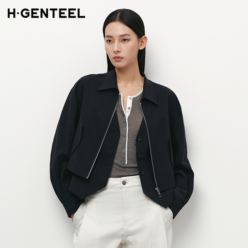 Lilbetter原牛短宽版 外套 哥萨克牛仔夹克2025秋明线设计翻领工装