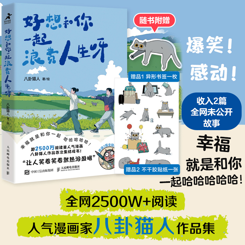 赠异形书签 漂泊青年情侣日常搞笑解压猫咪宠物生活碎片 不干胶贴纸 八卦猫人原创 暖心治愈漫画书籍 好想和你一起浪费人生呀