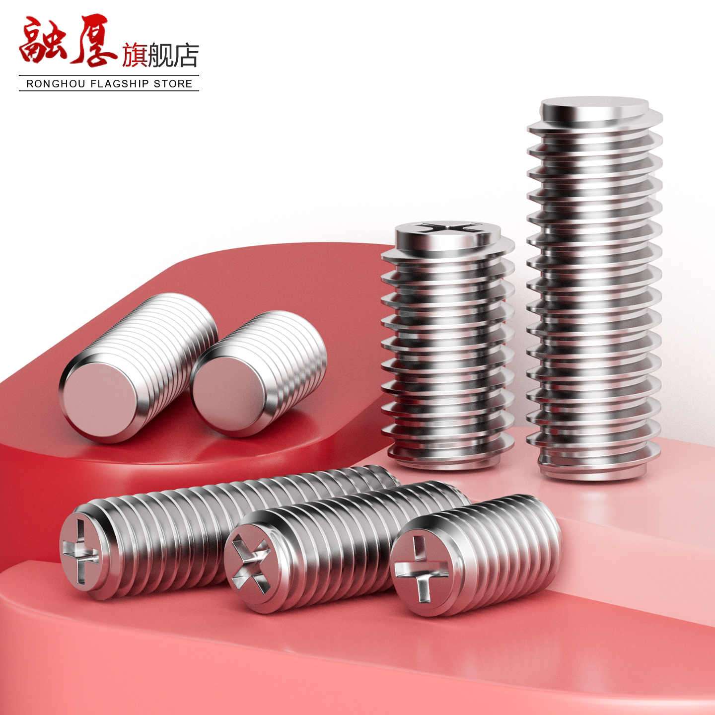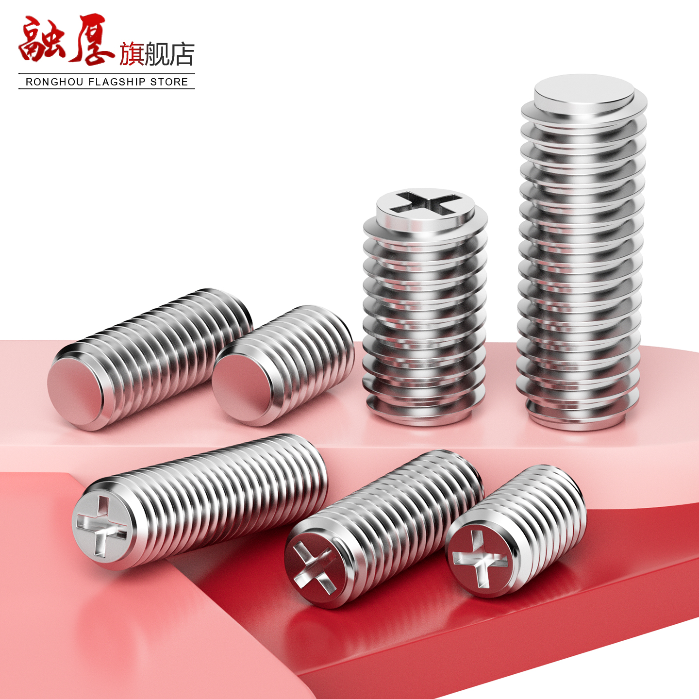 304不锈钢十字平端紧定螺丝无头止付机米螺丝钉平尾顶丝M2.5M3M4