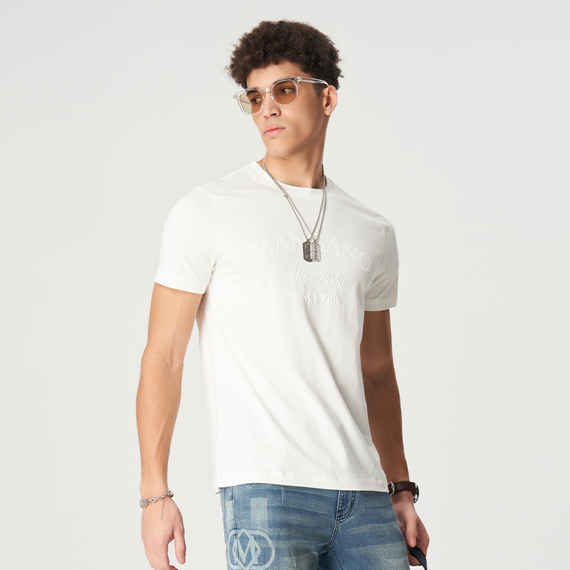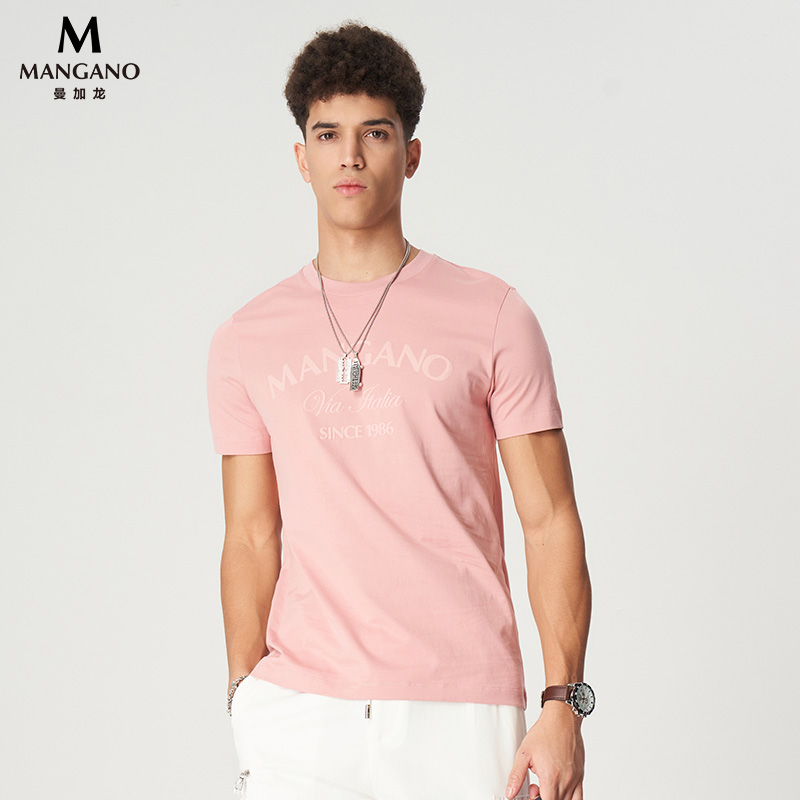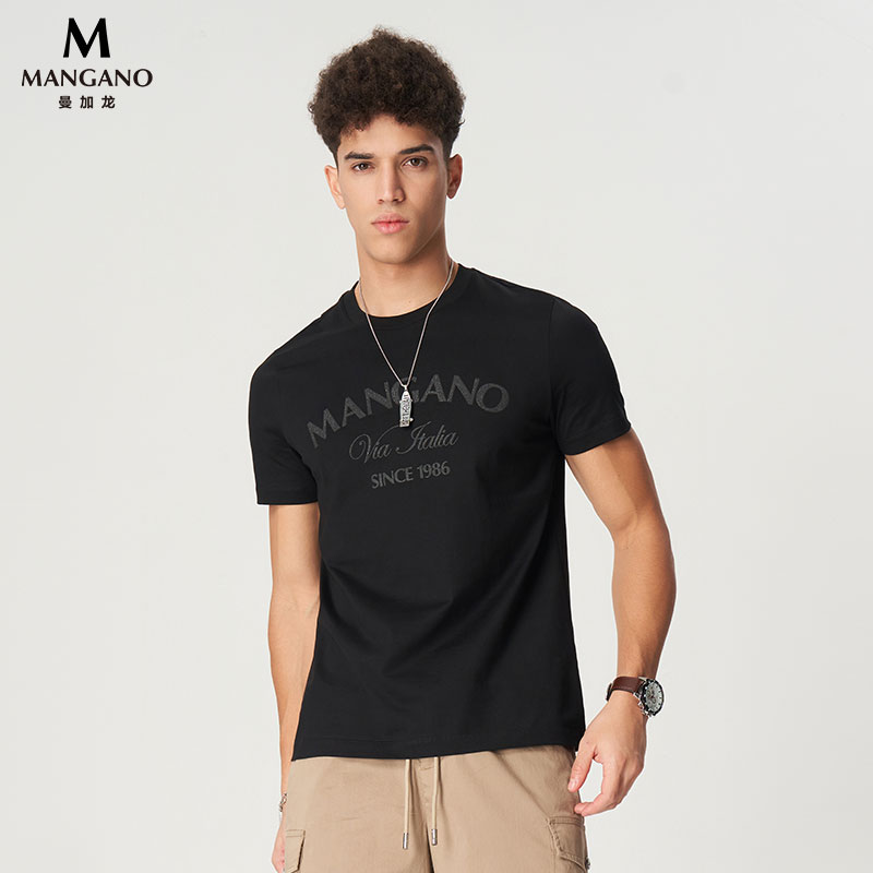 纯棉男士 格刺绣字母圆领T恤25夏季 Mangano曼加龙 短袖 长绒棉