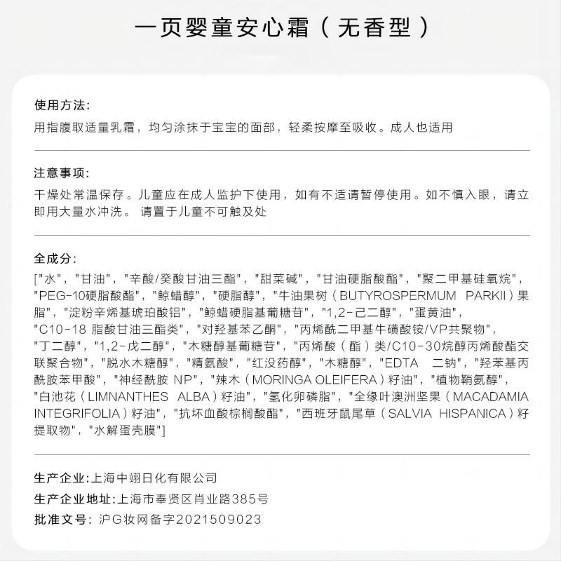 newpage一页儿童面霜宝宝霜安心霜50g舒缓保湿 崔玉涛推荐