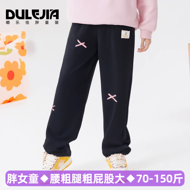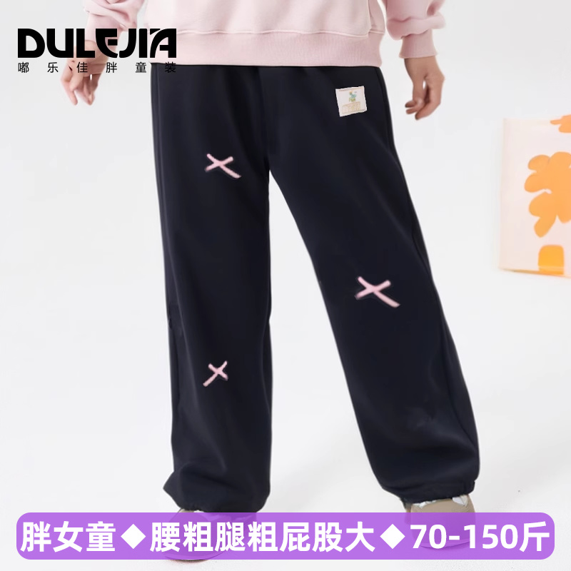 2025春季 女孩休闲喇叭裤 新款 宽松运动裤 加肥加大码 胖女童阔腿长裤