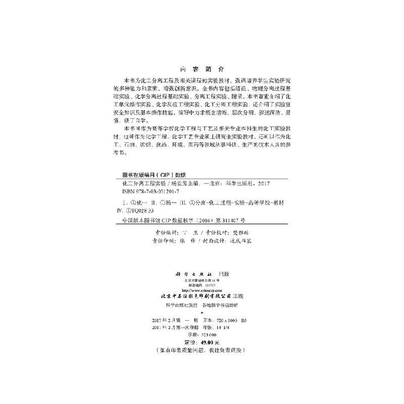 科学出版 杨世芳 社 化工分离工程实验 全新正版