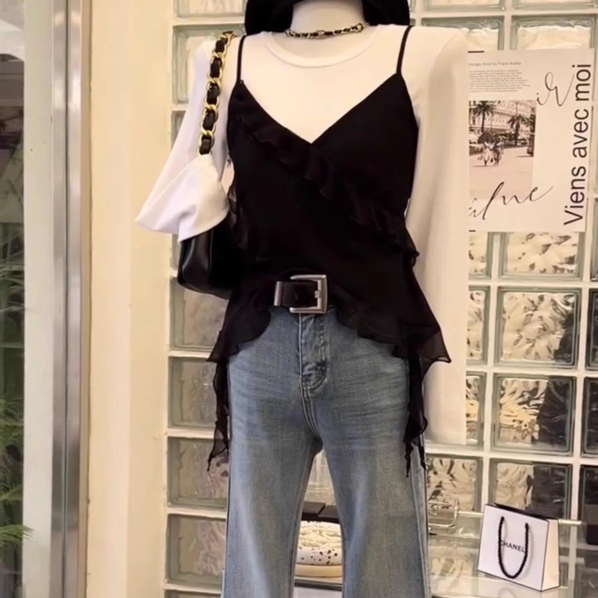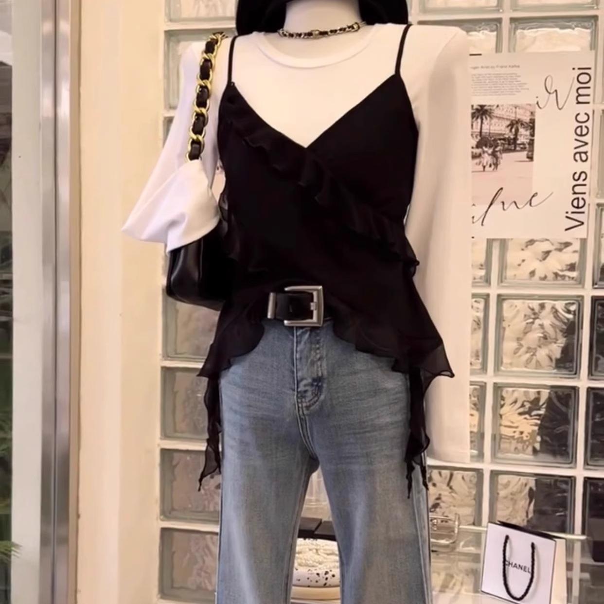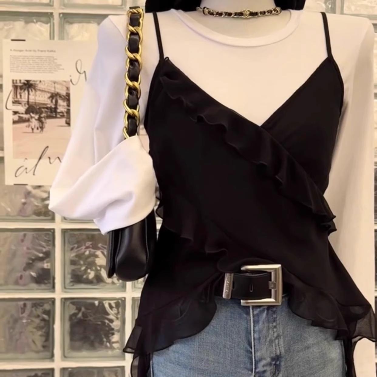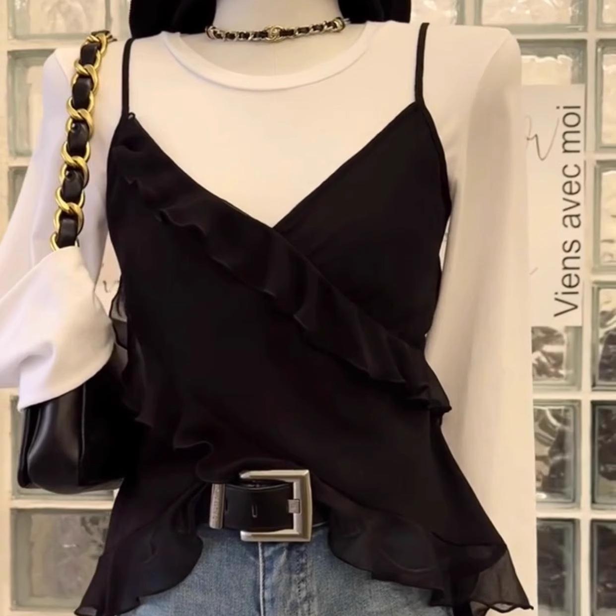 春秋新款 上衣叠穿轻奢高级感吊带 高级感气质显瘦百搭软糯长袖