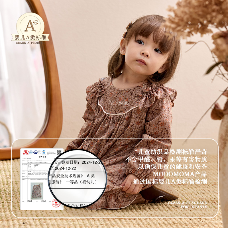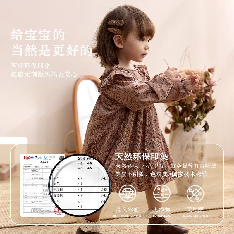 罗衣高级丝绒系带连衣裙女2025秋冬新款 气质优雅深咖色长裙12830