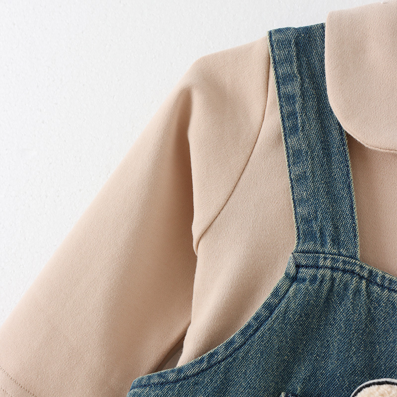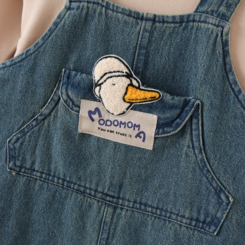 modomoma小童套装 男孩女孩时髦炸街上衣两件套 洋气牛仔背带裤