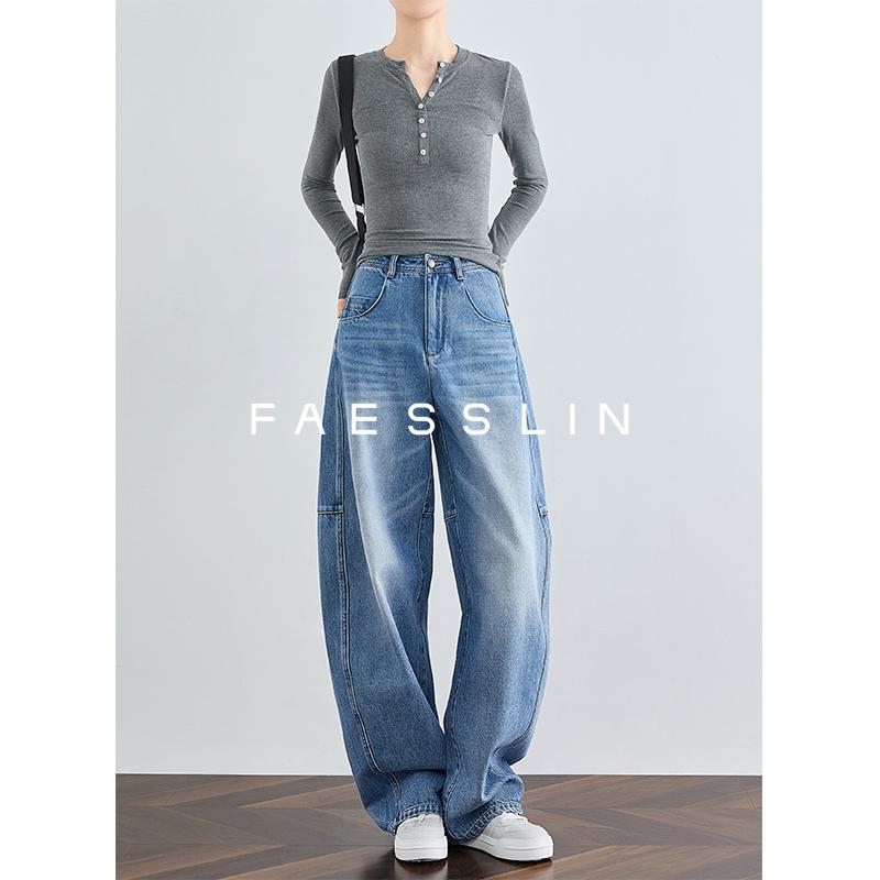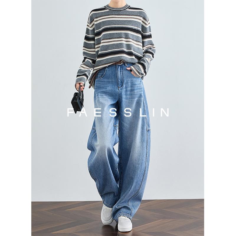 宽松复古时尚 女25秋新款 CHICJOJO阔腿牛仔裤 休闲裤 左岸随想