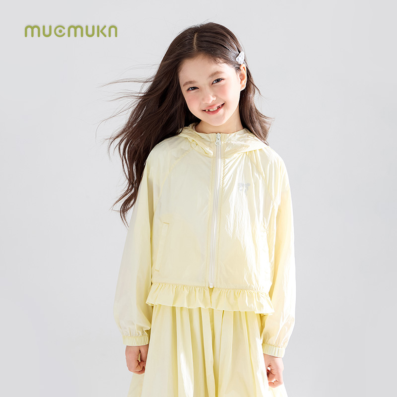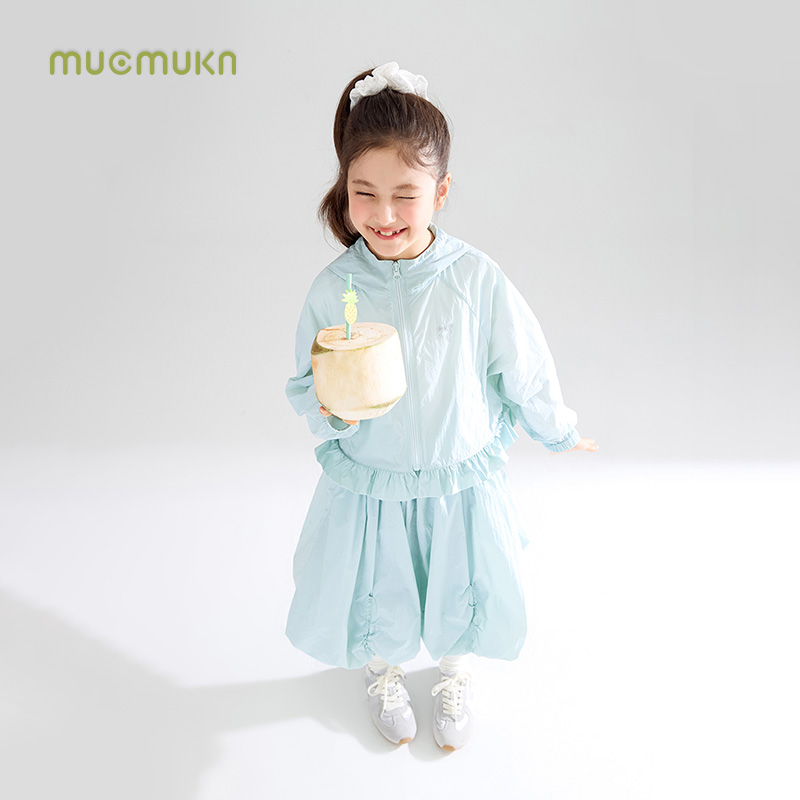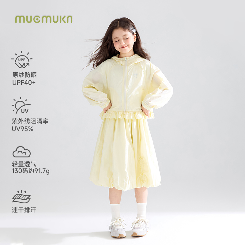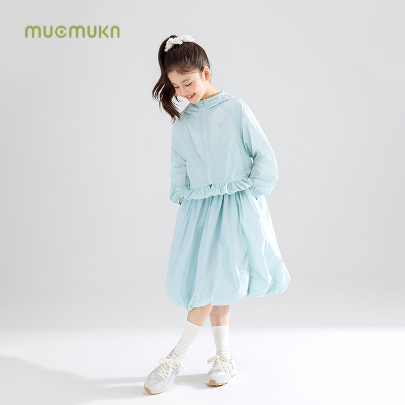 冰感轻薄速干外套荷叶花边蝴蝶结烫钻花苞腰裙 UPF40原纱防晒