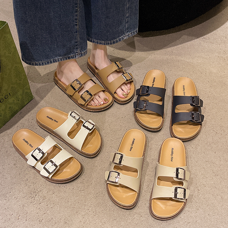 懒人一字拖软底时尚 勃肯鞋 外穿2025新款 女夏季 沙滩平底凉拖女 拖鞋