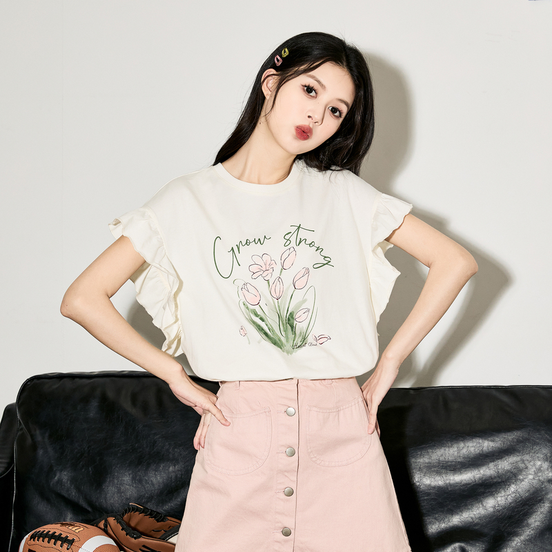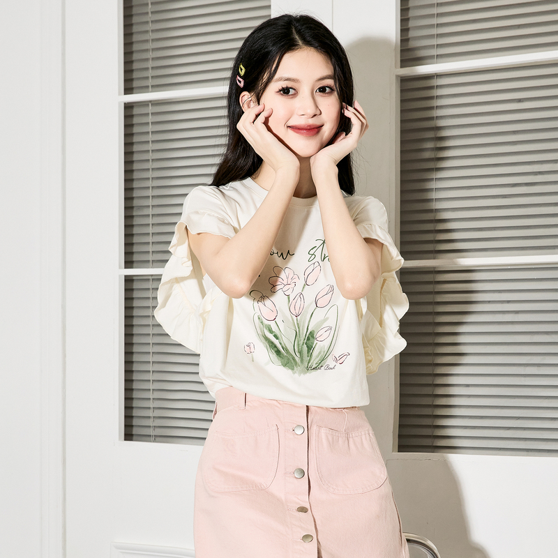 新款 T恤女夏季 情侣装 设计感甜美上衣洋气小衫 唐狮花边袖 爆款 短袖