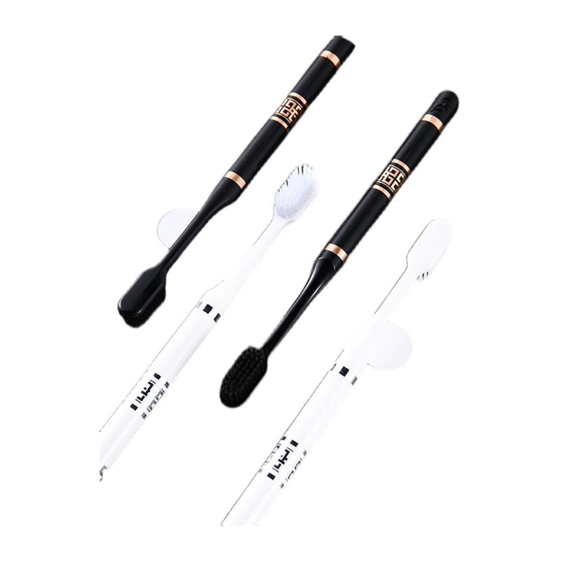 高档软毛牙刷家用国潮风大人学生细丝刷毛深黑白清洁层款 情侣牙刷