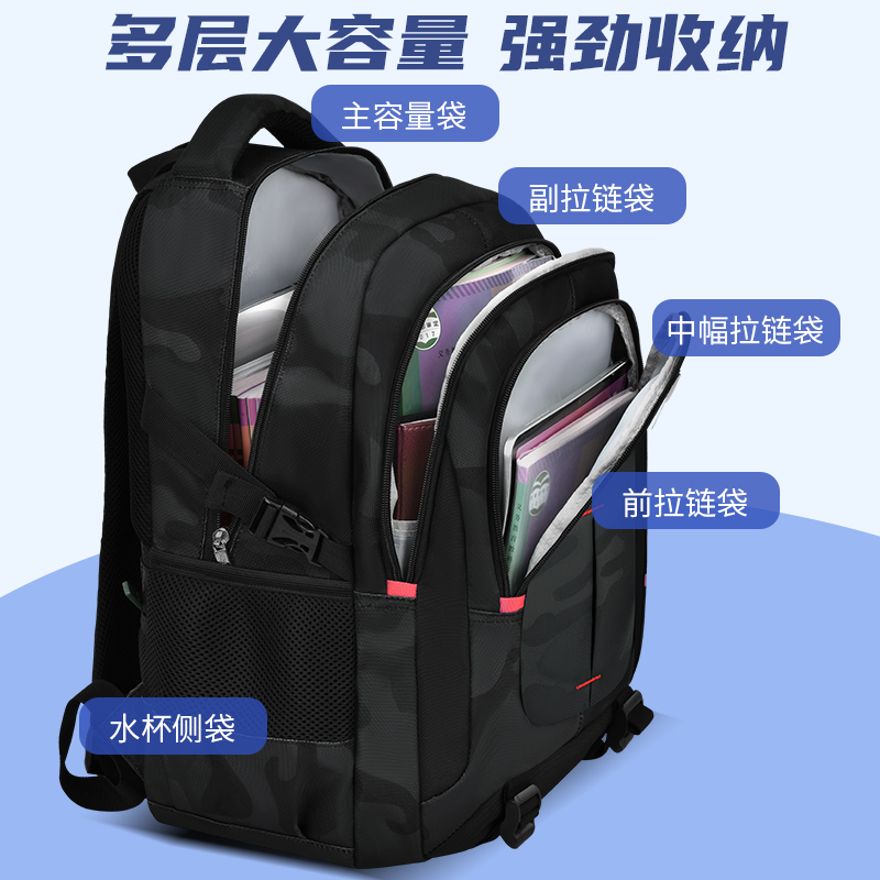 2025新款 中学生书包男生初中生高中生大容量背包男减负护脊男款