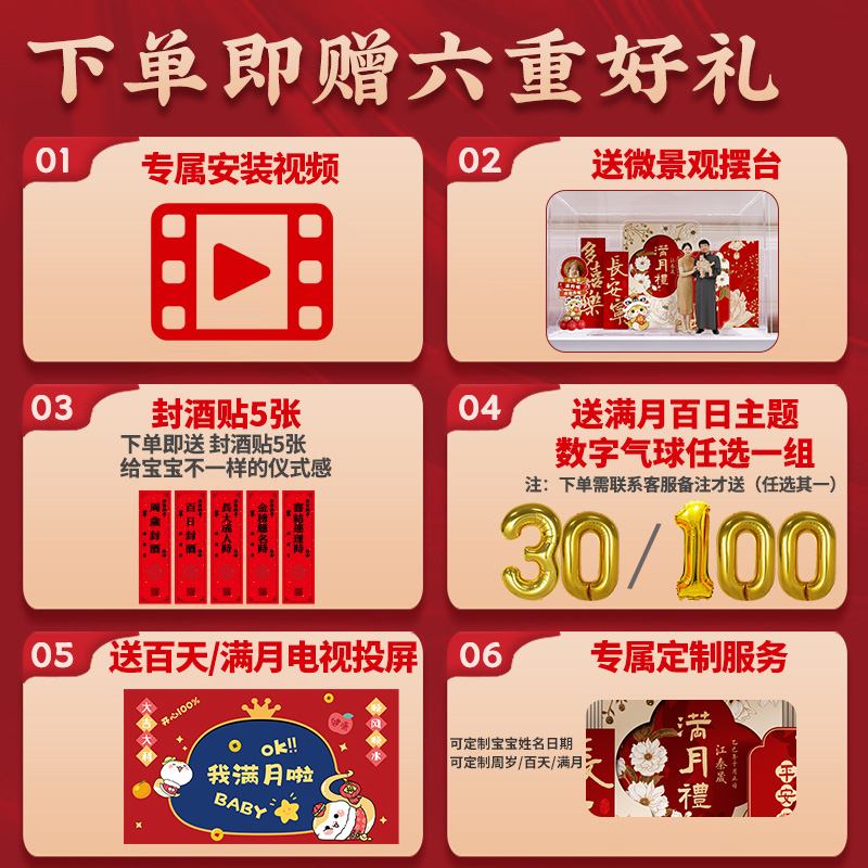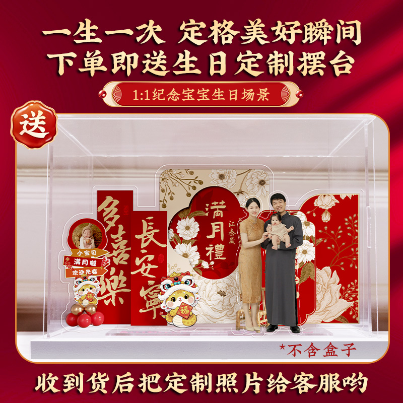 蛇宝宝满月百日宴布置背景墙kt板氛围感装 30天定制 饰用品百天仪式