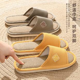 居家室内2025新款 男士 四季 棉麻布地板拖鞋 家用防滑夏季 男亚麻拖鞋