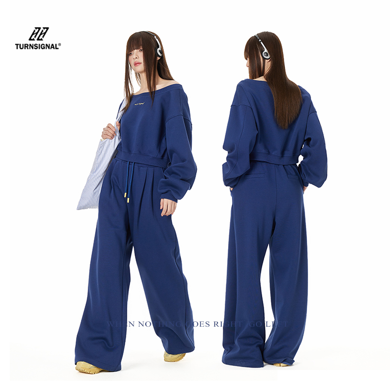 休闲运动两件套 女春秋2025新款 TurnSignal潮牌一字领卫衣长裤 套装