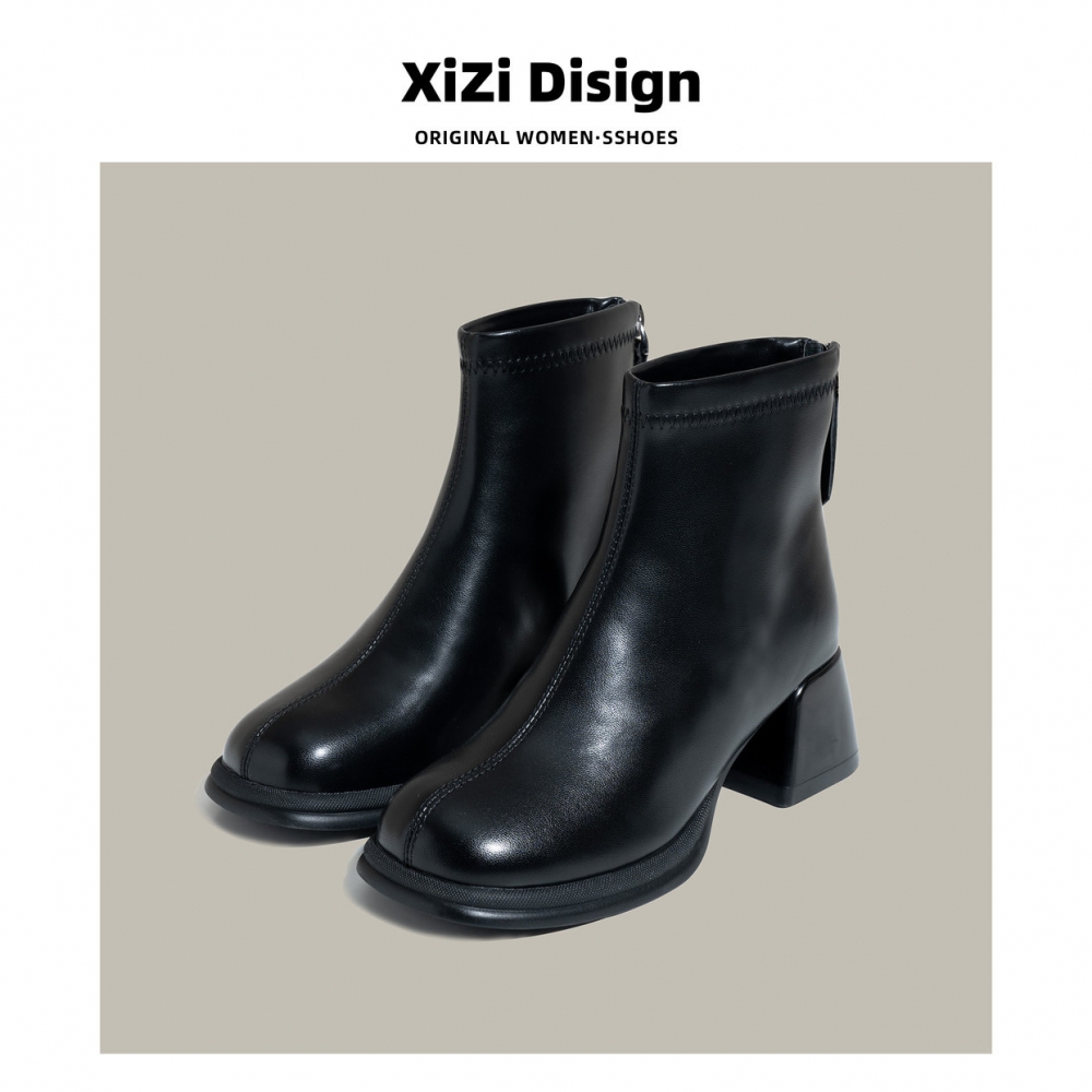 黑色增高靴子女时尚 新款 休闲皮面短靴 2025秋季 环球厚底马丁靴女款
