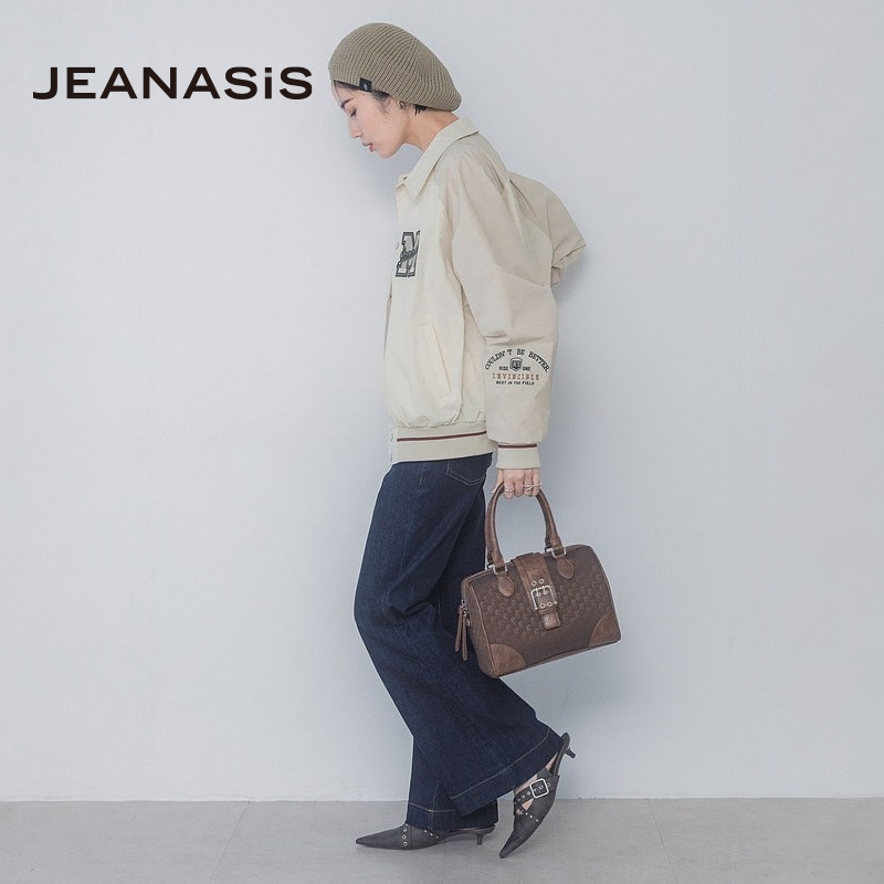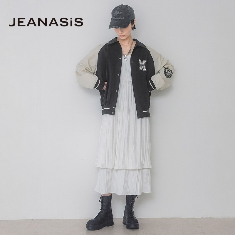 JEANASIS外套女2025年春秋新款 宽松气质流行翻领棒球服292001 时尚