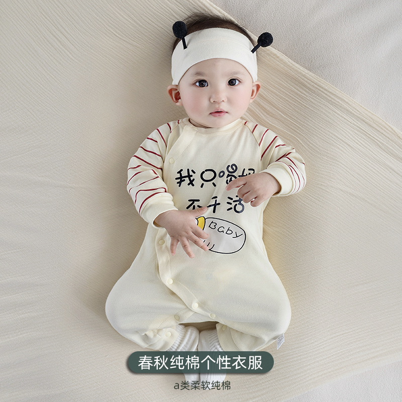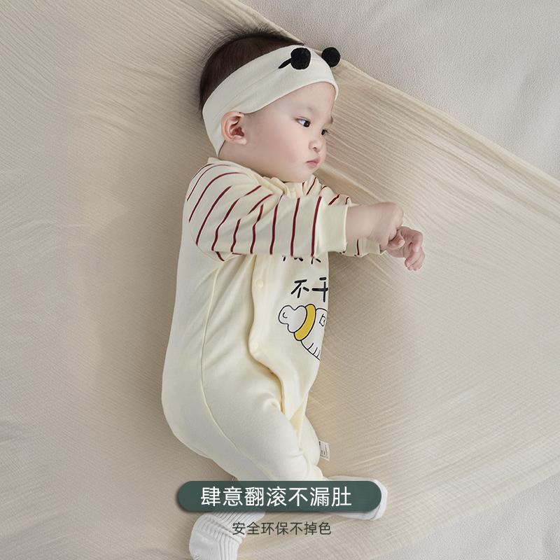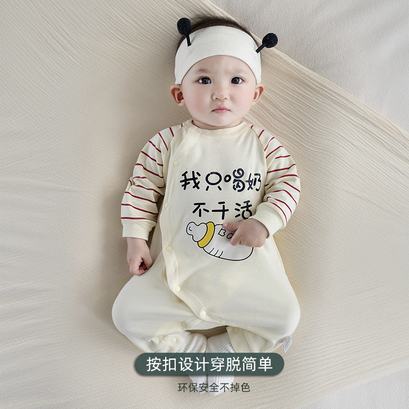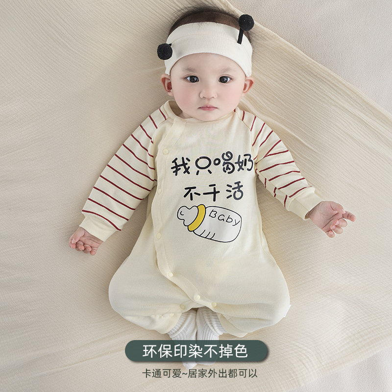 婴儿衣服纯棉连体衣春装 6月 a类男女宝宝哈衣小月龄可爱外出爬服3
