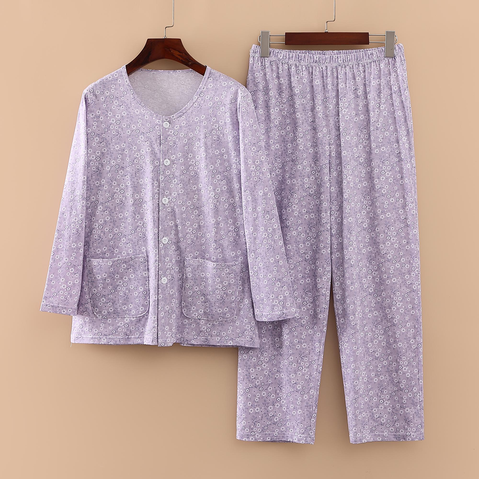 宽松女妈妈针织汗衫 纯棉中老年长袖 大码 春夏秋衣空调衫 开对襟薄款