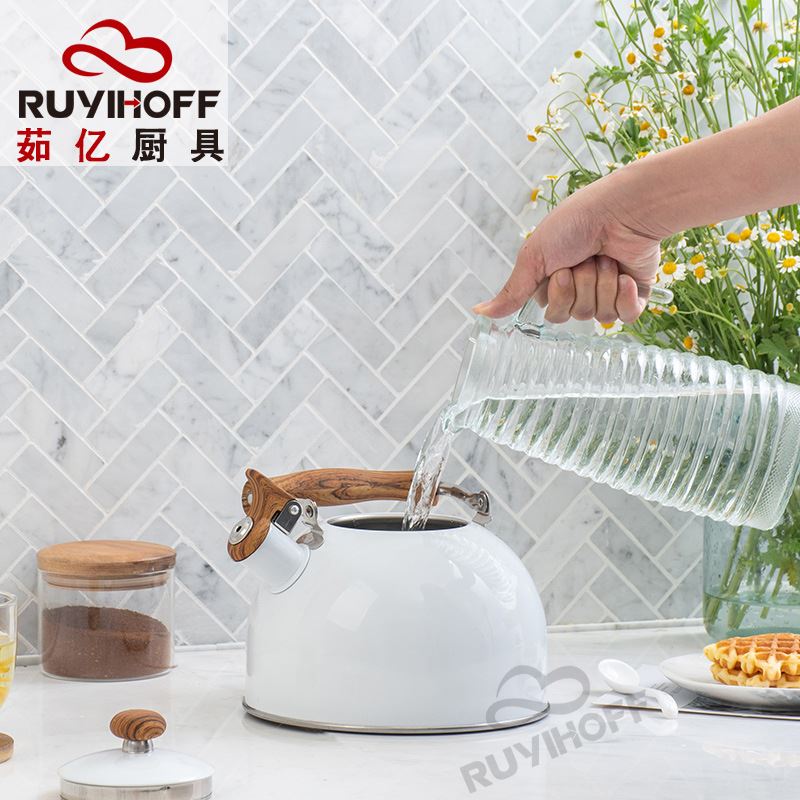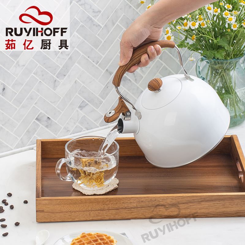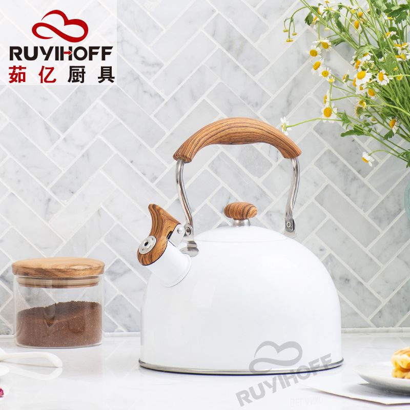 白色折叠手柄鸣音烧水壶新款 鸣笛煮水壶2.5L 口哨壶欧式